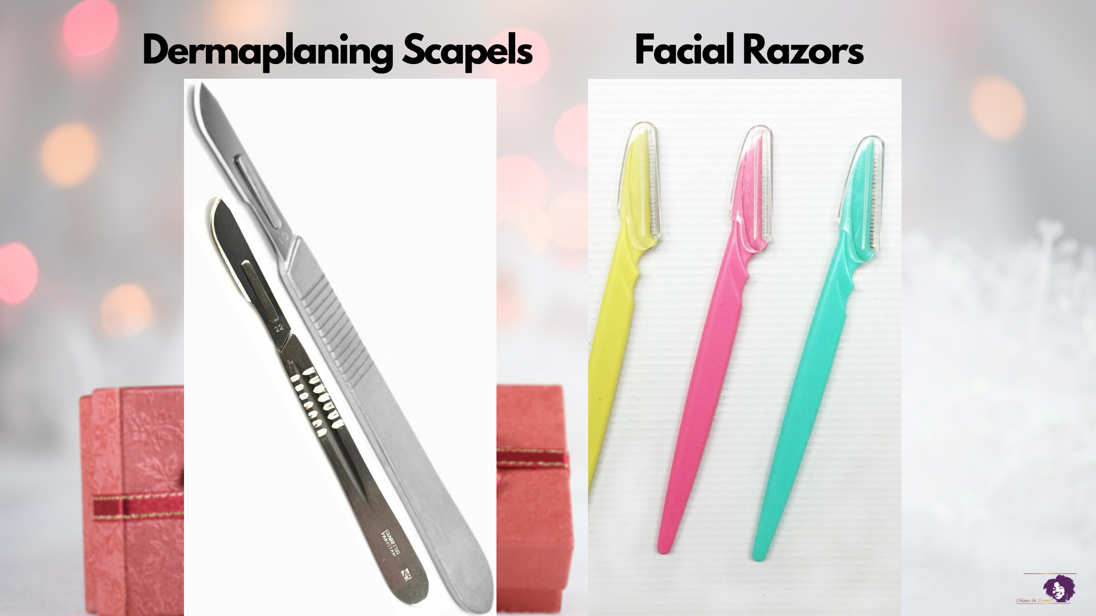Note briefly: Dermaplaning is a safe cosmetic exfoliation procedure that removes the top layers of the skin. It uses a sterile surgical scalpel to remove excess dead skin and peach fuzz hairs. At home dermaplaning/ shaving the face is done with a far less sharp razor and may not exfoliate as effectively as a professional procedure.